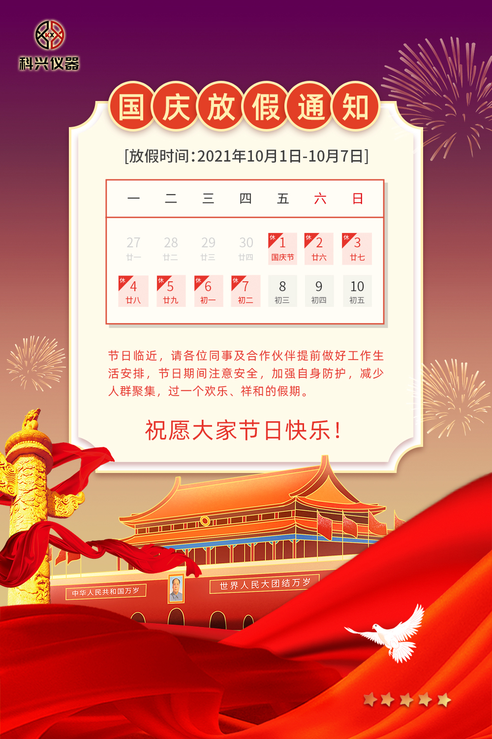 當前位置您當前的位置: 首頁>新聞中心>公司動態>2021國慶節放假通知