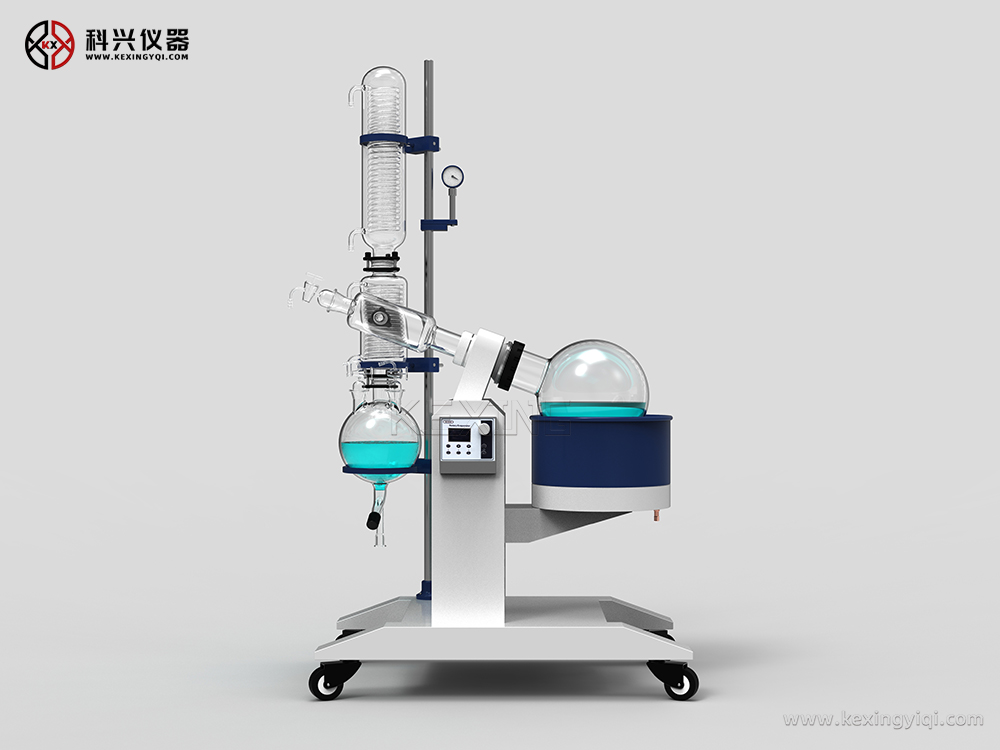 旋轉(zhuǎn)蒸發(fā)儀主要用于醫(yī)藥、化工和生物制藥等行業(yè)的食品等領域的中試,進行濃縮、結(jié)晶、干燥、分離及溶媒回收。有大容量、大口徑旋轉(zhuǎn)蒸發(fā)瓶,置于水浴中,邊旋轉(zhuǎn)邊加熱,使溶液高效擴散蒸發(fā)。產(chǎn)品可與循環(huán)水式多用真空泵、隔膜真空泵、低溫循環(huán)(真空)泵,循環(huán)冷卻器,恒溫循環(huán)器,低溫冷卻液循環(huán)泵等配套組成系統(tǒng)裝置。其原理為在真空條件下,恒溫加熱,使旋轉(zhuǎn)瓶恒速旋轉(zhuǎn),物料在瓶壁形成大面積薄膜,高效蒸發(fā)。溶媒蒸氣經(jīng)高效玻璃冷凝器冷卻,回收于收集瓶中,大大提高蒸發(fā)效率。特別適用對高溫容易分解變性的生物制品的濃縮提純。