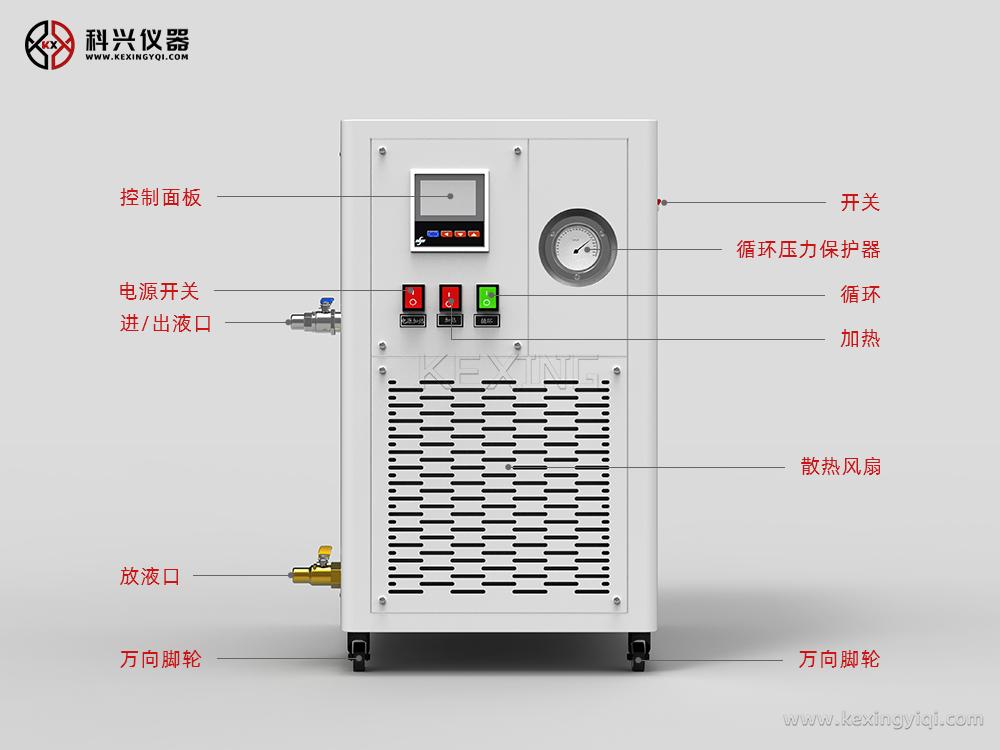 密閉型加熱循環器,是指導熱介質在封閉的循環系統中采用電加熱方式,通過循環泵輸出導熱流體加熱配套反應容器的一種新型加熱設備。